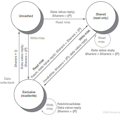将内存分布在各个节点之间不仅增加了带宽,还减少了对本地内存的延迟。分布式共享内存(DSM)多处理器也被称为非统一内存访问(NUMA),因为访问时间取决于数据字在内存中的位置。DSM的主要缺点是处理器之间的数据通信变得稍微复杂,并且DSM需要更多的软件工作来利用分布式内存提供的增加内存带宽。由于大多数基于多核的多处理器系统使用分布式内存,因此我们将从这个角度解释分布式内存多处理器的操作。