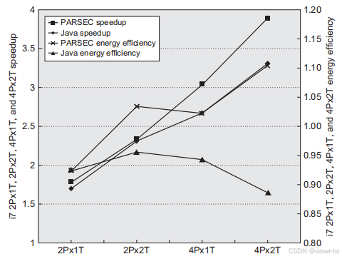 - 在2000年至2005年间,设计师试图发现和利用更多ILP时遇到的硅和能源使用效率显著降低,结果证明这种做法是低效的,因为电力和硅的成本增长速度快于性能。除了ILP,我们所知道的唯一可以快速提高性能的方法(从切换的角度来看)是通过多处理。