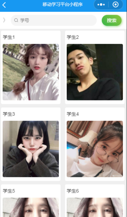 教师进入指定功能操作区之后可以查看学生。其页面见下图。教师通过学号获取学生信息,点击学生头像查看学生介绍。