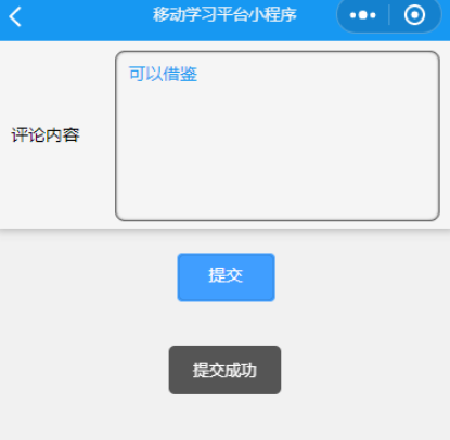 基于微信小程序的移动学习平台的学生可以发布评论,评论时不登记评论信息,系统会及时反馈。其反馈结果见下图。