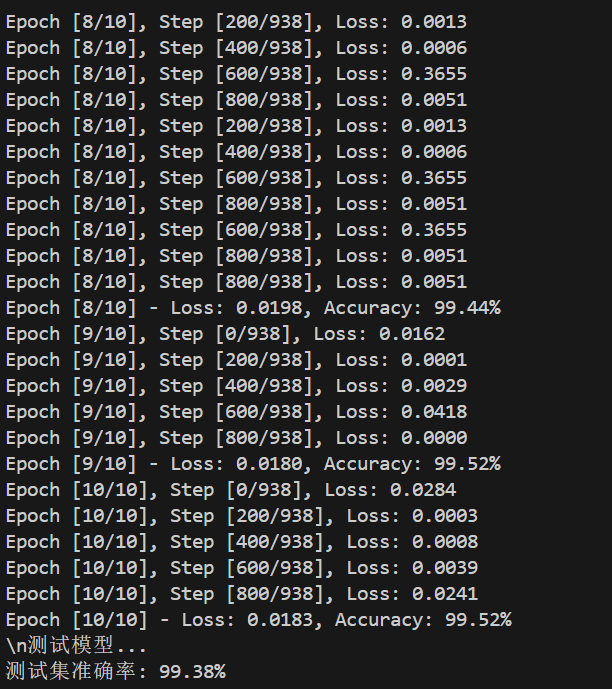 else:print("⚠️ 未达到98%准确率要求,可以尝试调整超参数或增加训练轮数")