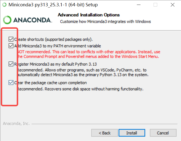 轻量级: 只包含conda、Python和少量必要包,下载快速灵活性: 可以根据需要安装特定的包,避免不必要的软件
