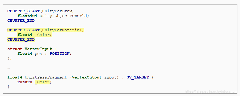 不同于M矩阵Unity已经帮我们处理好了,color属性需要我们自己手动创建constant buffer并存入其中