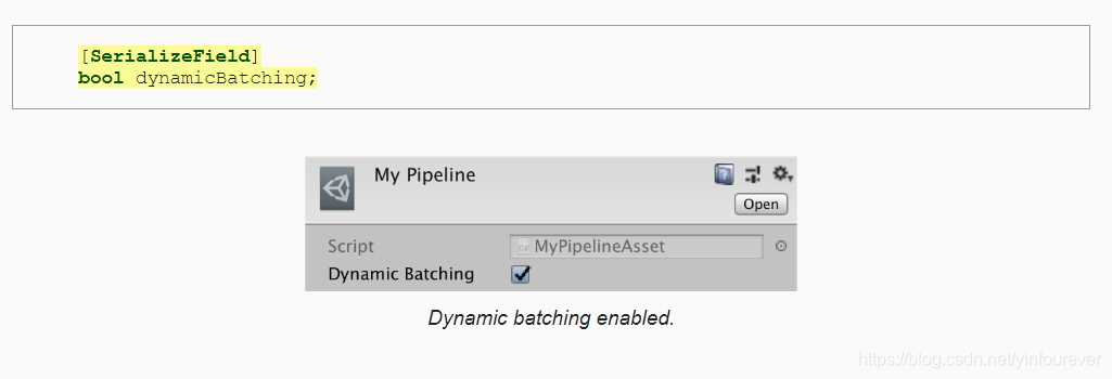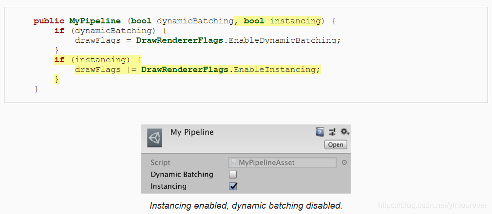 在MyPipeline的构造函数中,传入是否开启动态合批的bool值