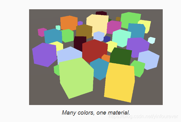 这时就可以用一个material渲染多种颜色了,但是到目前为止,每个物体都会产生draw call