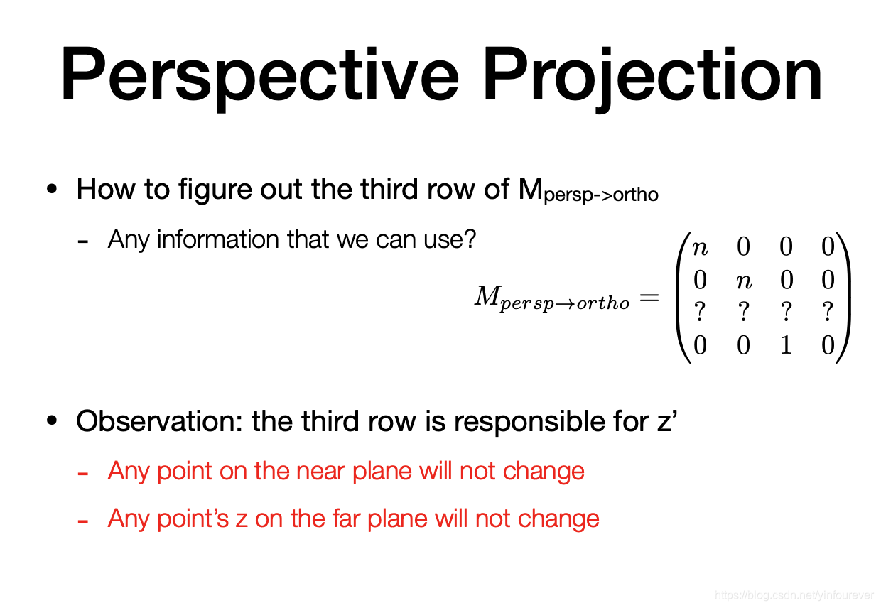 - 再根据特殊的点(近平面和远平面的点)求得变换矩阵其他的项