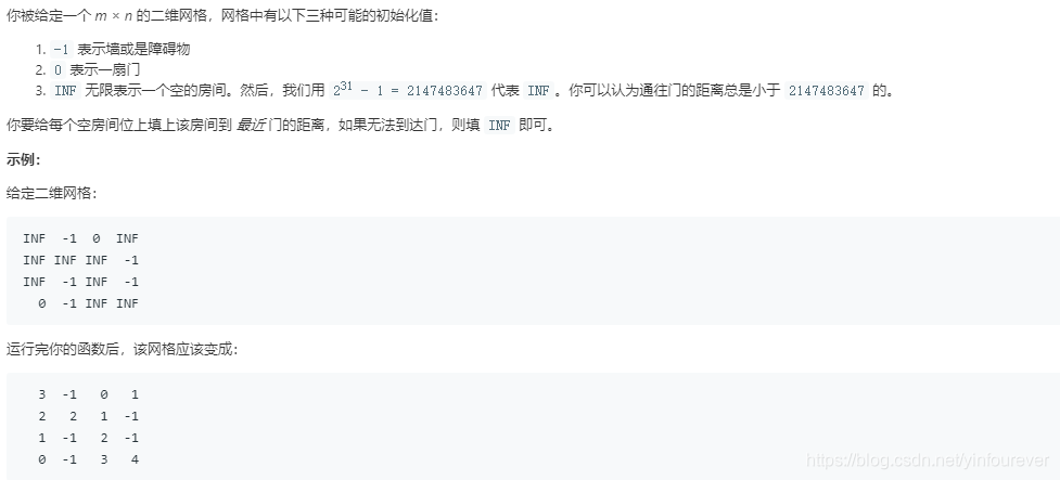 思路2: 多源BFS,先把每个门都压入队列中,然后进行BFS搜索,BFS搜索保证了每个位置只需要遍历到一次,第一次搜索到时一定是最短距离,因此这种算法对于大量数据时肯定会更优秀