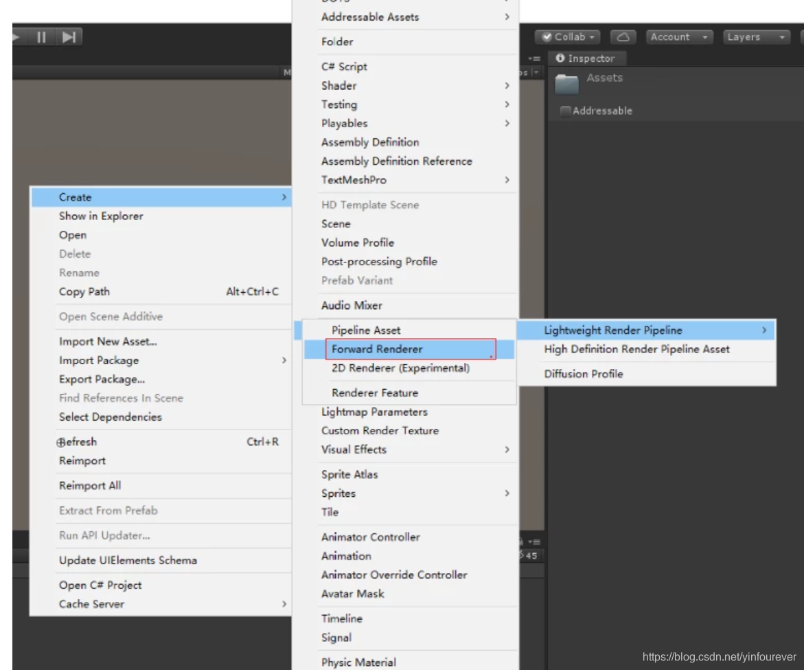 在项目文件夹中右键创建,找到ForwardRenderer这个选项