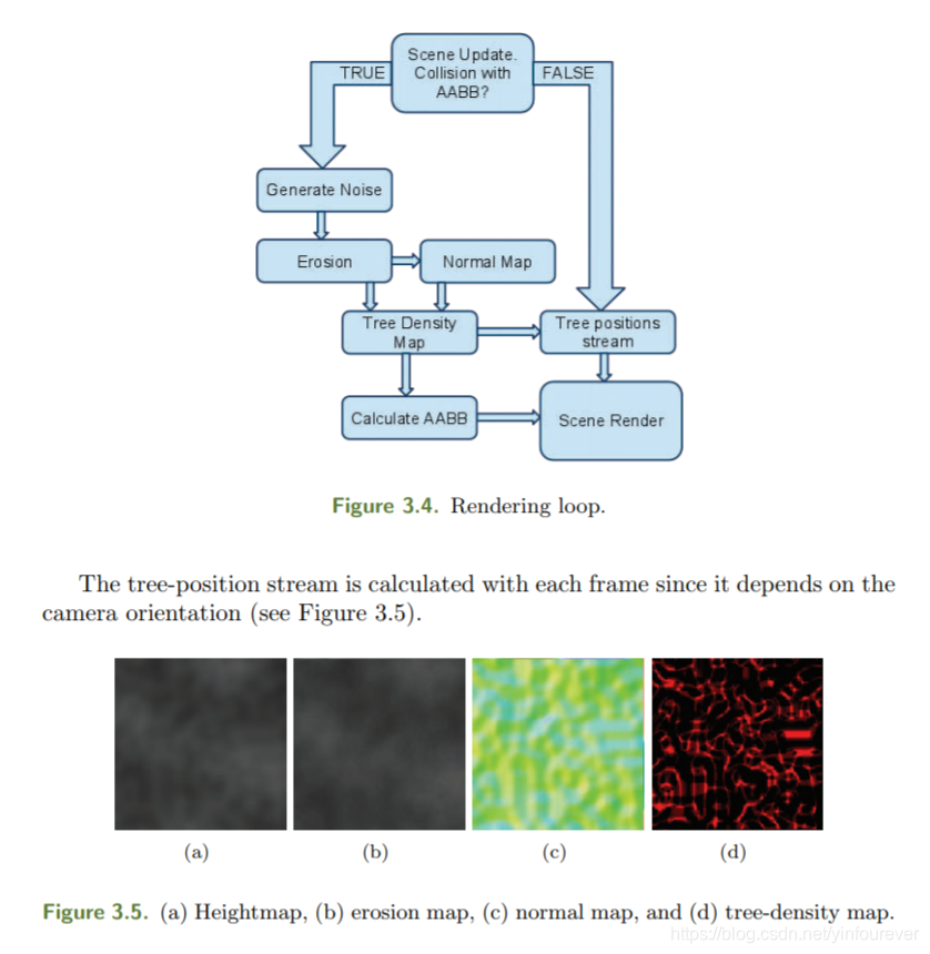 碰撞触发需要生成新一部分地形 -- 生成噪音 -- 计算erosion,生成高度图 -- 生成法线贴图 -- 生成树的密度图--生成树的真正位置信息--渲染场景