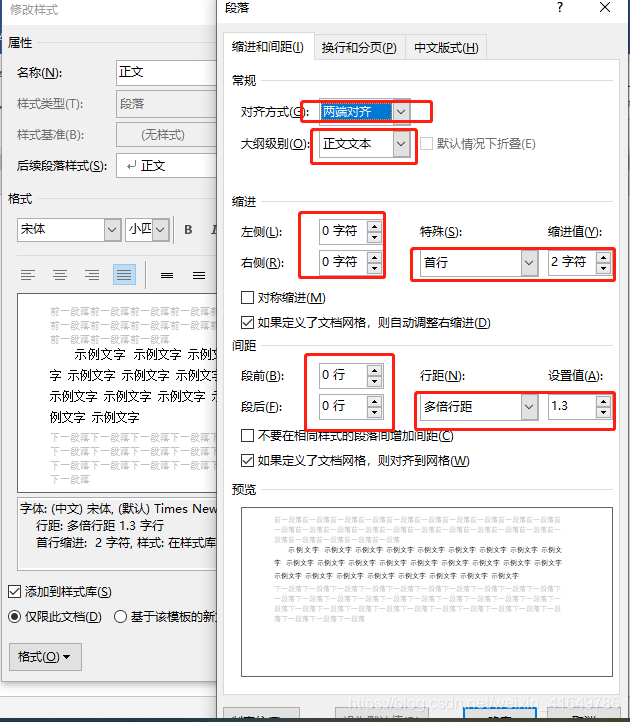 根据你们学校的毕业论文要求,正文什么字体(中文+英文),、行间距、首行空两格、两端对齐等;一级、二级等标题的字体、段前段后、行间距、对齐方式等等;我以我的学校为例,如下图所示: