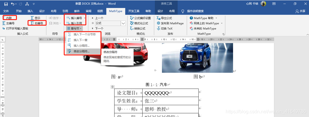 我框起来的几个很重要,会用这个,论文公式排版就容易很多,在也不用在文本来对公式排序;具体的操作可以下载这篇文档(地址:我的博客资源)。