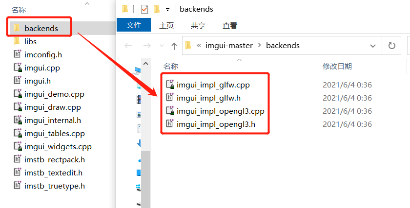 经过删减和整理,也就是保存下来下面这些文件,在正常情况下就可以将example_glfw_opengl3的demo运行起来了。libs是直接从原来的examples中复制出来没有删减。