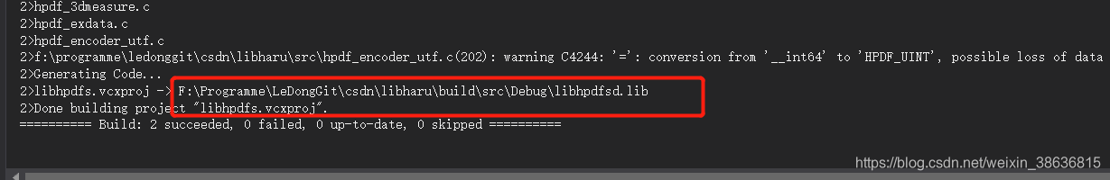 首先是要编译libharu库,我看了好几篇文章,感觉说的都不很清楚,操作性不强,后来无意间发现了这篇文章(https://blog.csdn.net/zerojava0/article/details/111482470?utm_medium=distribute.pc_relevant.none-task-blog-baidujs_baidulandingword-5&spm=1001.2101.3001.4242),我照着博主说的步骤进行操作,虽然我在操作过程中遇到了博主没有提到的一些问题,但是我还是逐一解决了,最后也编译成功了。