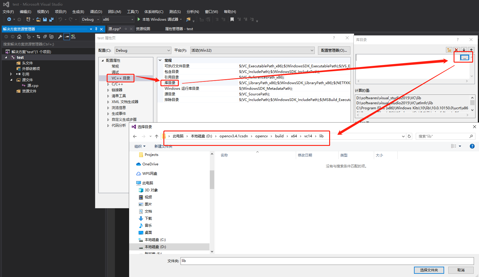 我的windows下是使用的一个镜像安装的vs2015,然后在vs上编译工程需要使用opencv时,需要在工程中配置opencv