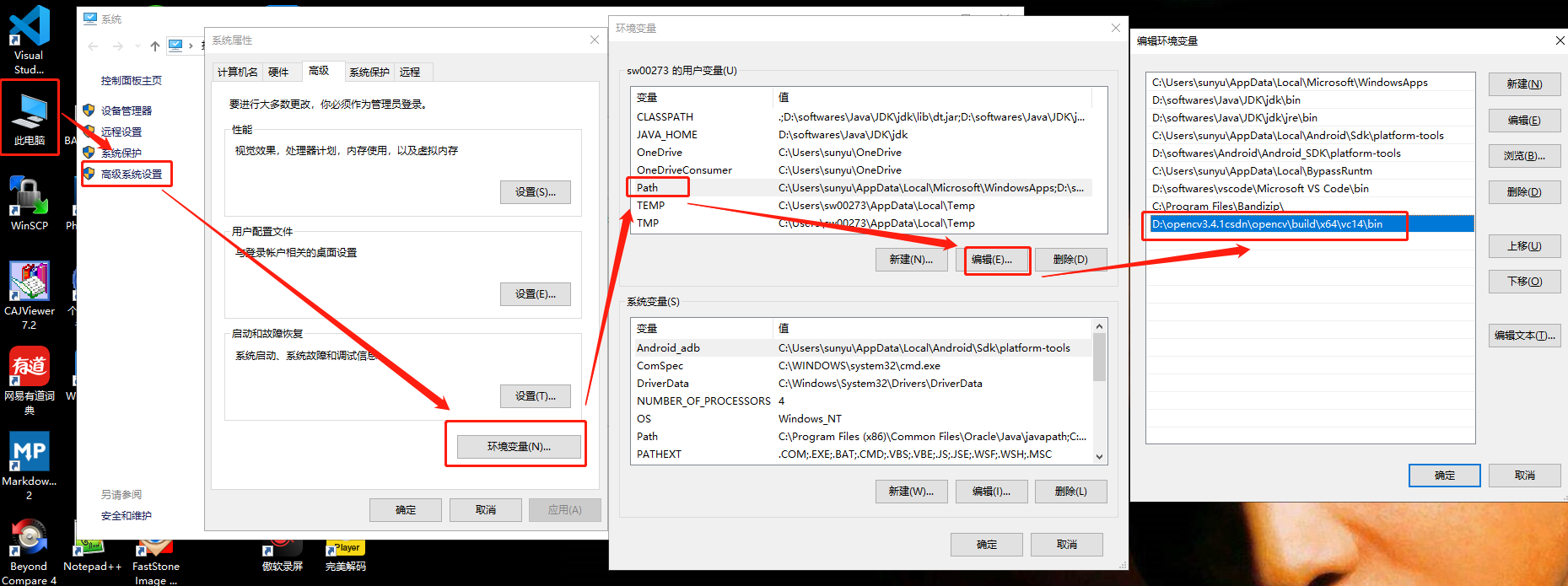 “此电脑”右键点击“属性”-->选择“高级系统设置”-->选择“高级”-->选择“环境变量”-->选择“Path”-->点击“编辑”-->添加“bin路径”