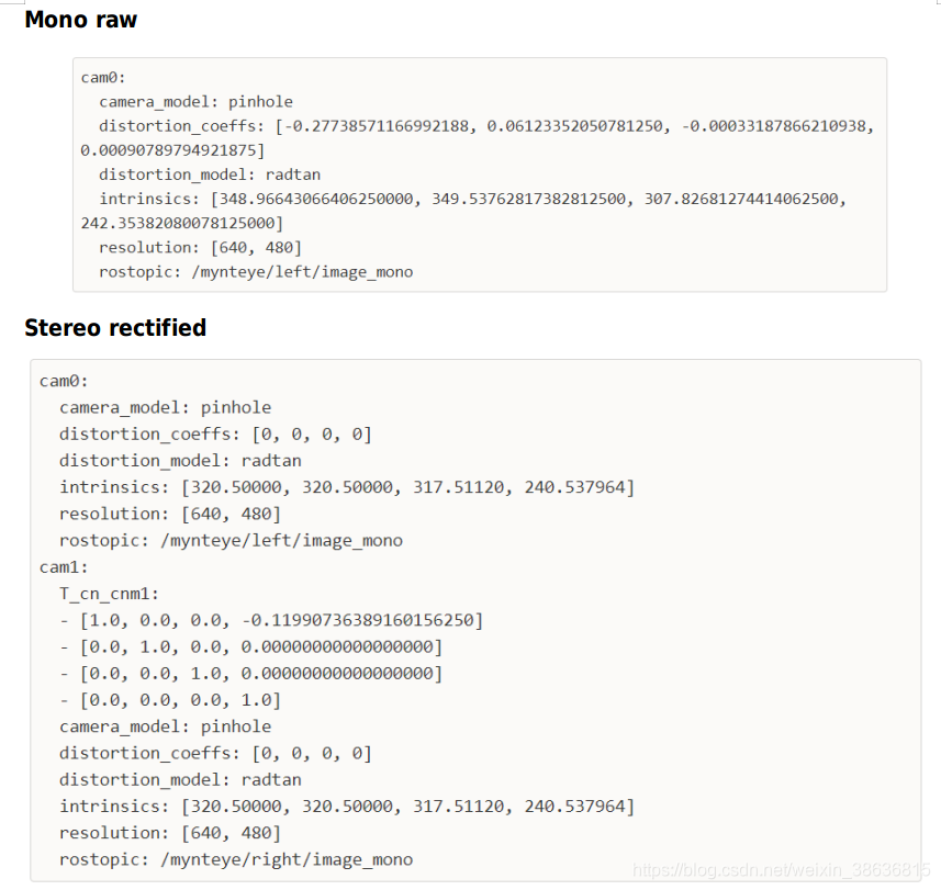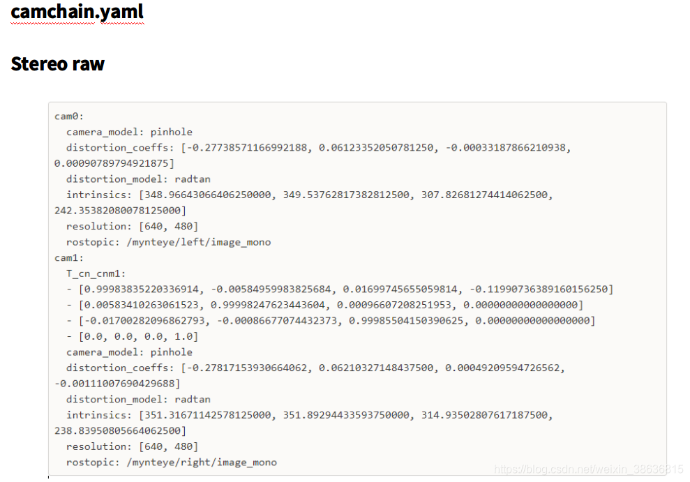 - Camchain.yaml文件中左目图像到右目图像平移变换数据要以米为单位,不能以毫米或者厘米。