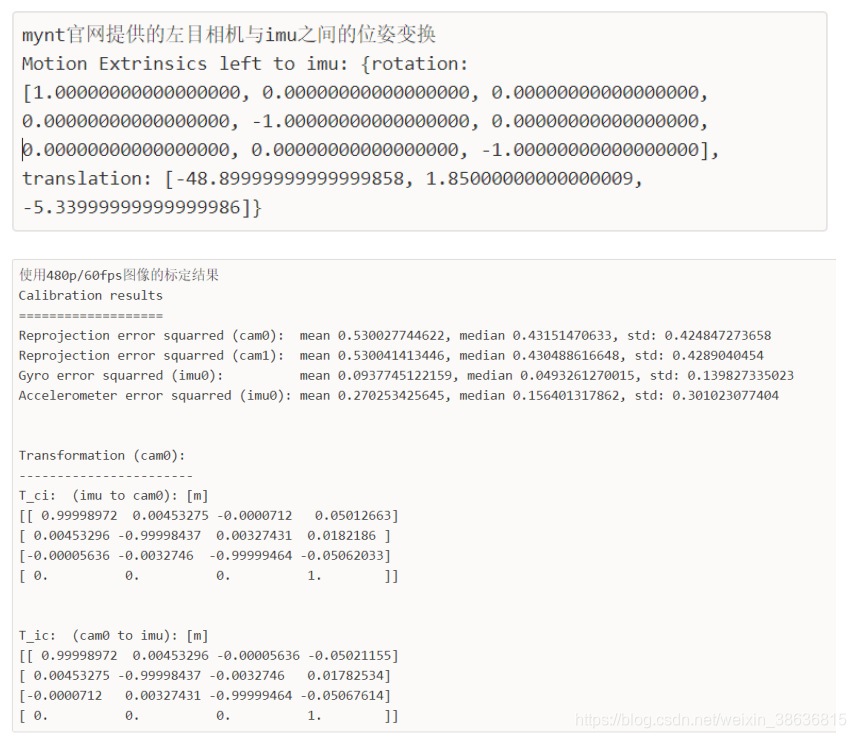 MYNT D1000-IR-120双目相机和IMU外参标定