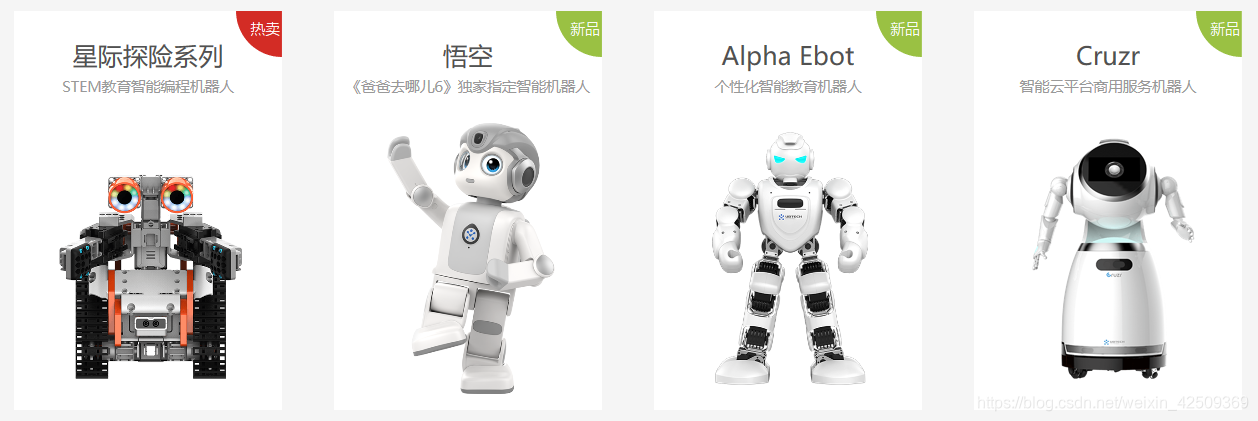 国内人工智能和机器人领域领先者,人工智能和人形机器人研究与开发的前沿科技企业。2008年,优必选从人形机器人的核心源动力伺服舵机研发起步,逐步推出了消费级人形机器人、商业人形机器人和Jimu机器人相关产品。公司估值已经超过10亿美元,成为机器人领域的“独角兽”。2016年10月,优必选与曼城达成战略合作协议,成为曼城俱乐部唯一官方机器人合作伙伴。目前优必选积极打造“硬件+软件+服务”机器人生态圈,并力争实现在人工智能领域实现较大突破,让机器人走进千家万户。目前推出的产品有如下几款: