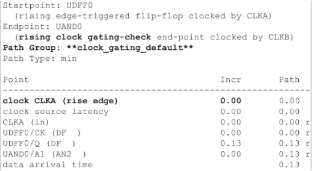 运用提到的定义,对于上图来说,CLKB才是clock signal。接下来我们以这个电路为例看看如何进行clock gating check(对于这个与门来说,有些类似于data to data check):
