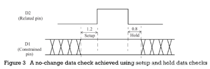 set_data_check -rise_from D2 -to D1 -setup 1.2set_data_check -fall_from D2 -to D1 -hold 0.8