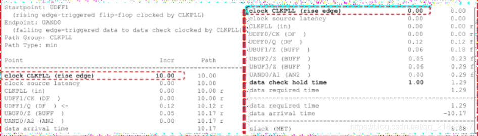 由于data to data check的特殊性,其hold check会有些不同。其时序报告如下: