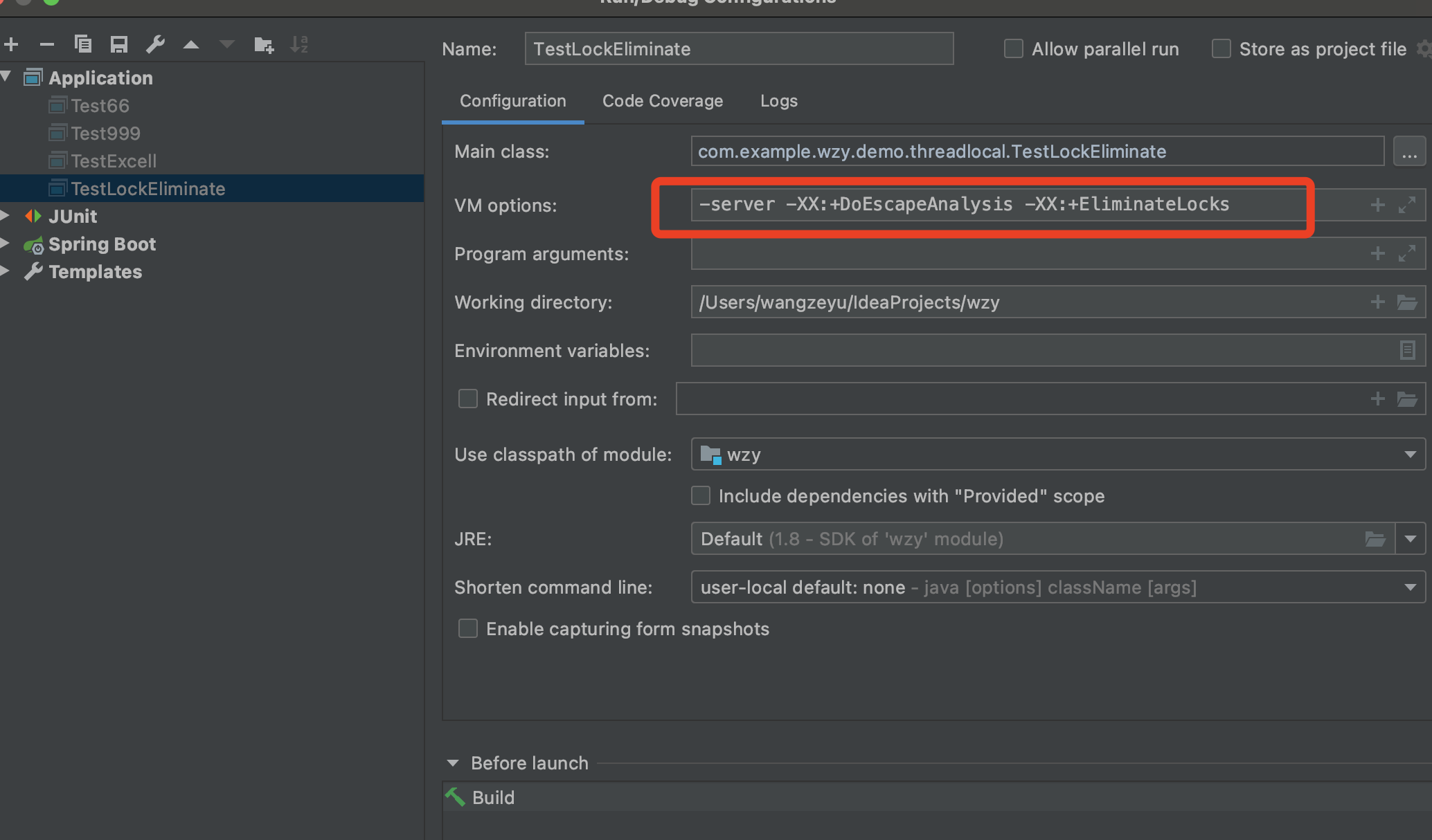 -server -XX:+DoEscapeAnalysis -XX:-EliminateLocks
