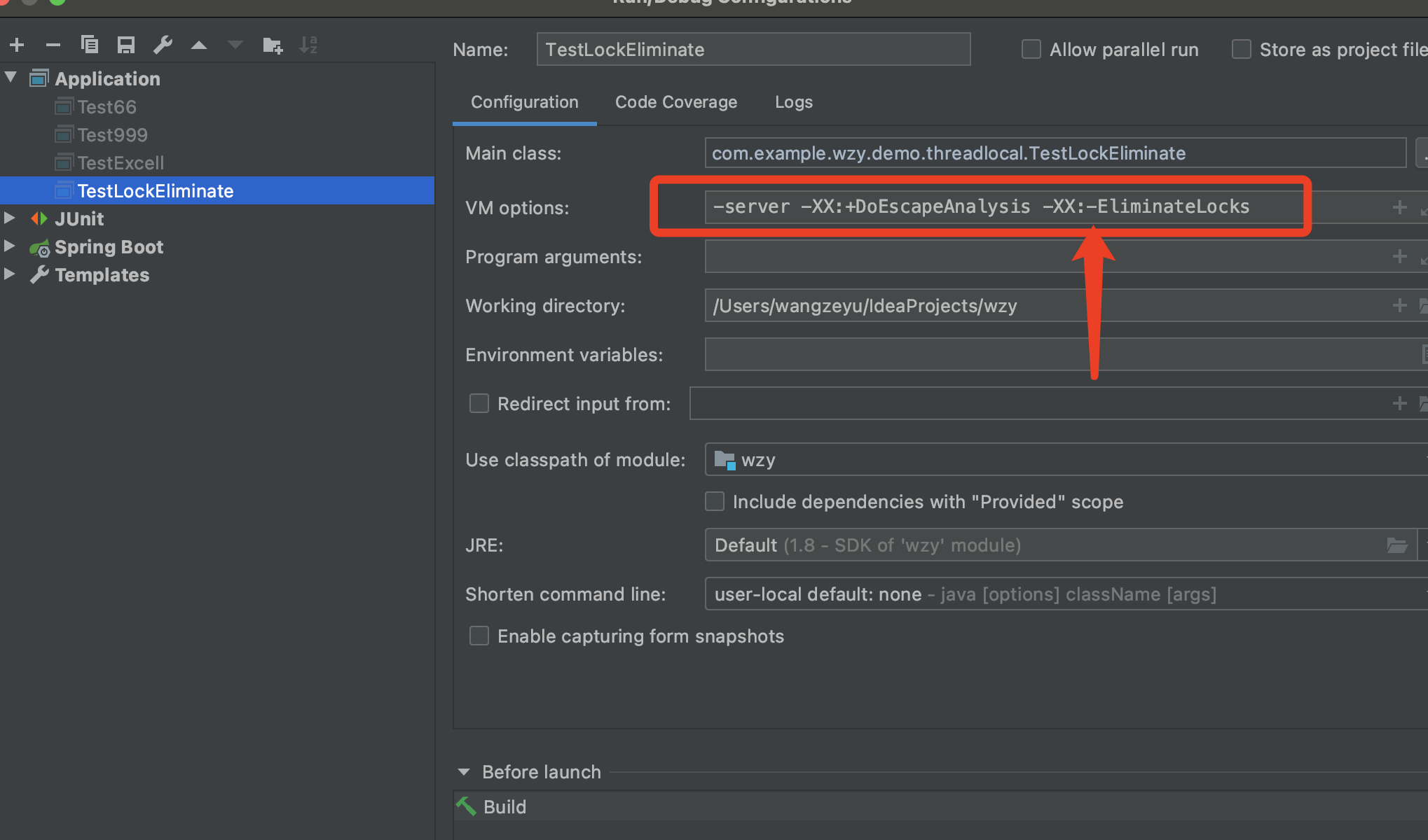 开启锁消除是在JVM参数上设置的,当然需要在server模式下: