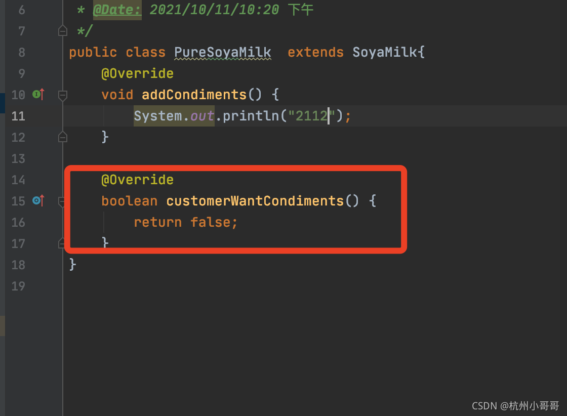 public class PureSoyaMilk extends SoyaMilk{@Overridevoid addCondiments() {System.out.println("2112");}@Overrideboolean customerWantCondiments() {return false;}