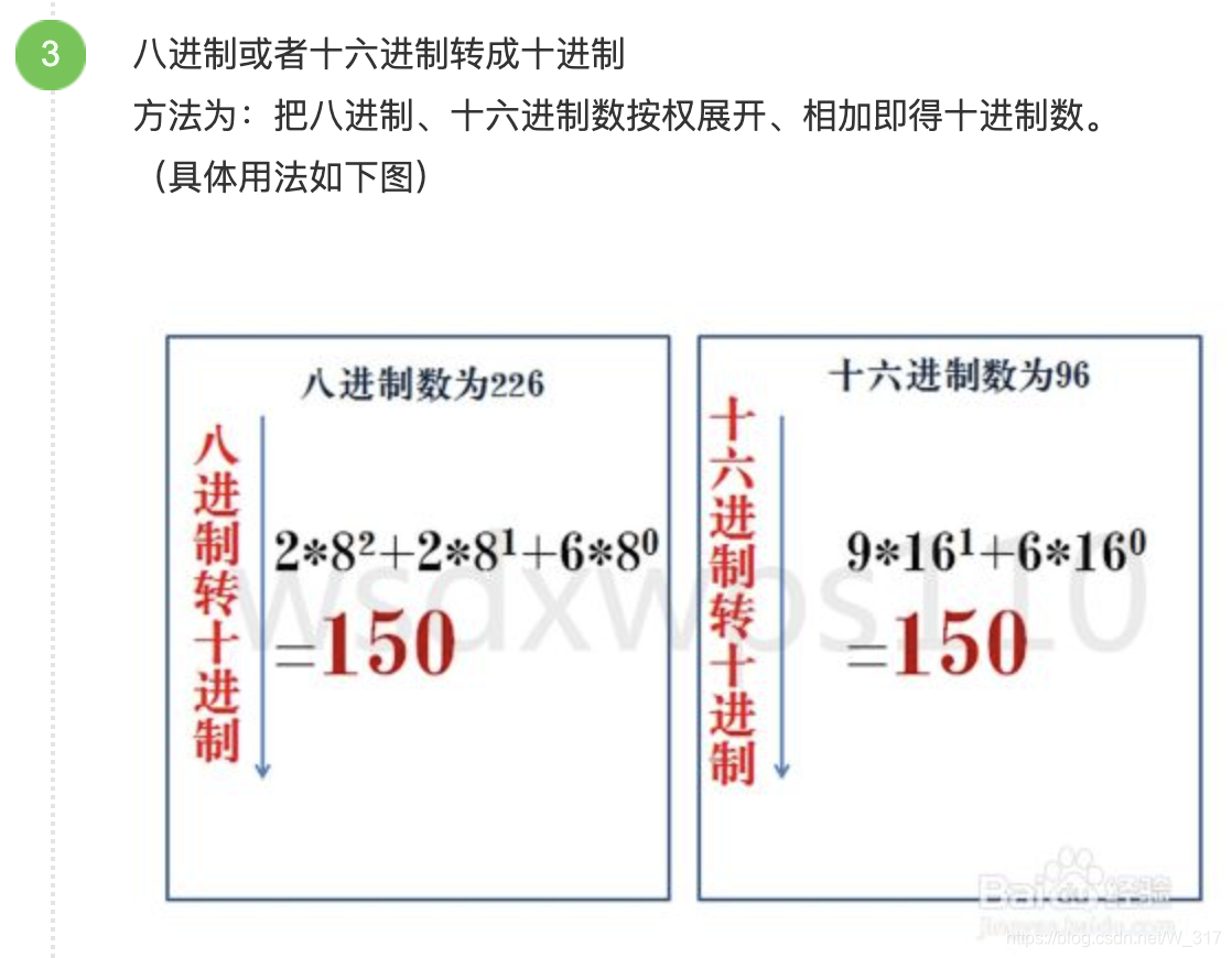 基数:基数是指一种进制中组成的基本数字,也就是不能再进行拆分的数字。二进制是0和1;八进制是0-7;十进制是0-9;十六进制是0-9+A-F(大小写均可)。也可以这样简单记忆,假设是n进制的话,基数就是【0,n-1】的数字,基数的个数和进制值相同,二进制有两个基数,十进制有十个基数,依次类推。
