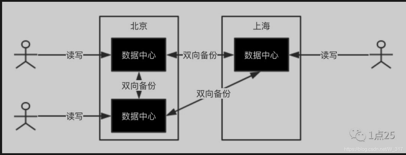不再区分生产数据中心和灾备数据中心,只有数据中心,而且数据中心之间相互备份数据,保证每个数据中心都是全量数据。
