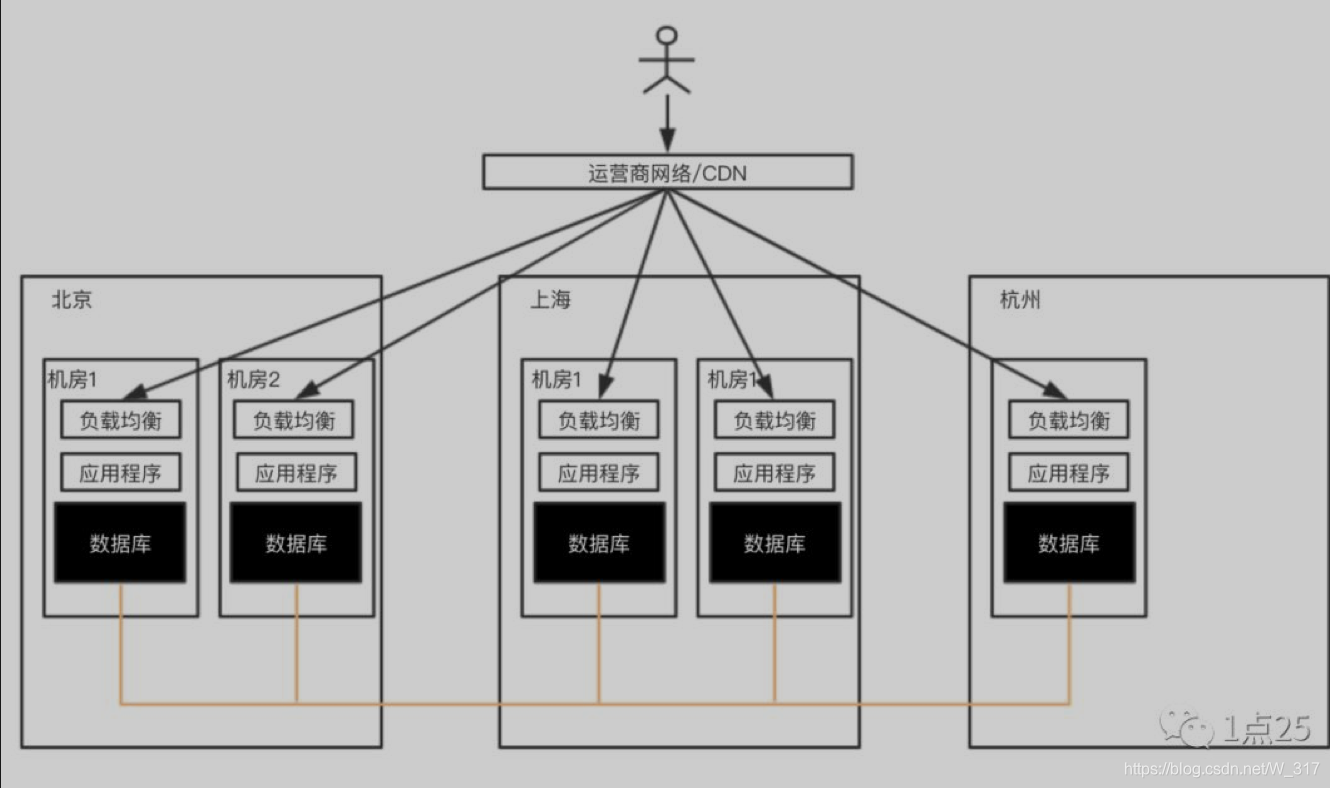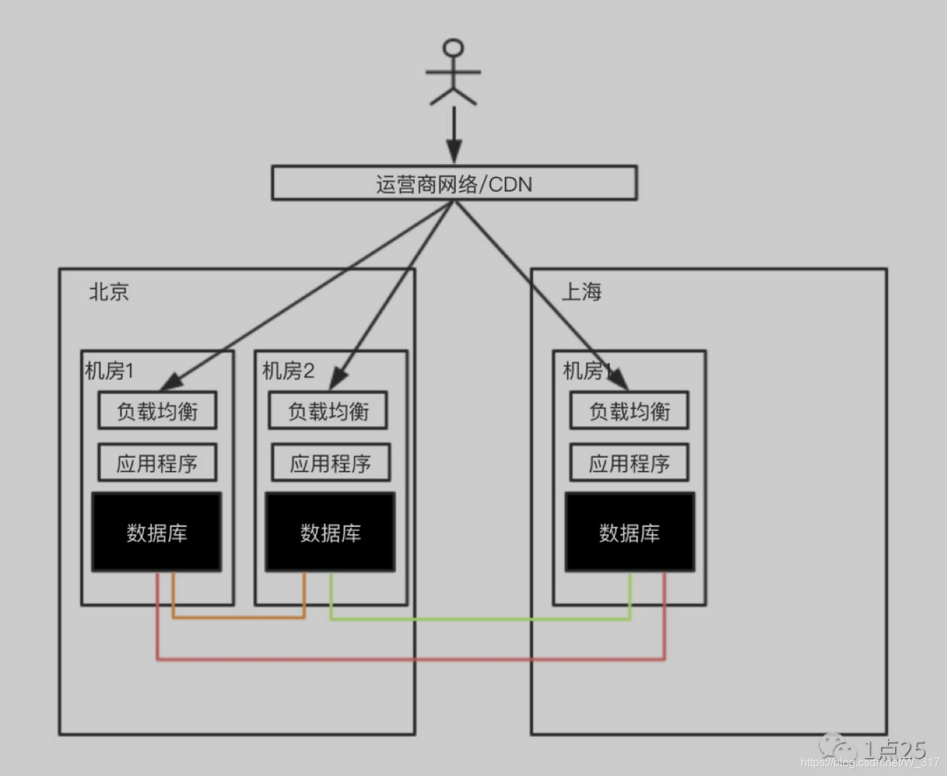 假设北京机房1整个停电了,那么可以通过运营商网络或CDN将流量迁移到北京机房2。