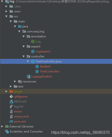 public class LogAspect {@Pointcut("@annotation(com.wzq.log.annotation.Log)")public void logPointCut() {}@Around("logPointCut()")public Object around(ProceedingJoinPoint point) throws Throwable, InterruptedException {System.out.println("=============================");Object result = point.proceed();MethodSignature signature = (MethodSignature) point.getSignature();Method method = signature.getMethod();String name = method.getName();System.out.println("Method Name:" + name);//输出方法名Log log = method.getAnnotation(Log.class);System.out.println("Log Value:" + log.value());//输出注解里面的值System.out.println("+++++++++++++++++++++++++++++");return result;}