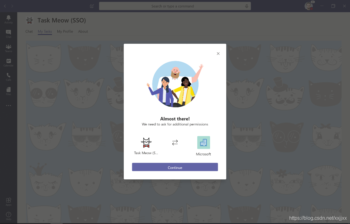 getAuthToken()方法,这个方法会告知Teams客户端,你的tab app想要一个token。 - 如果这个是当前用户第一次,并且你的app需要用户审核,那teams客户端就会弹出一个审核的窗口。类似于下图