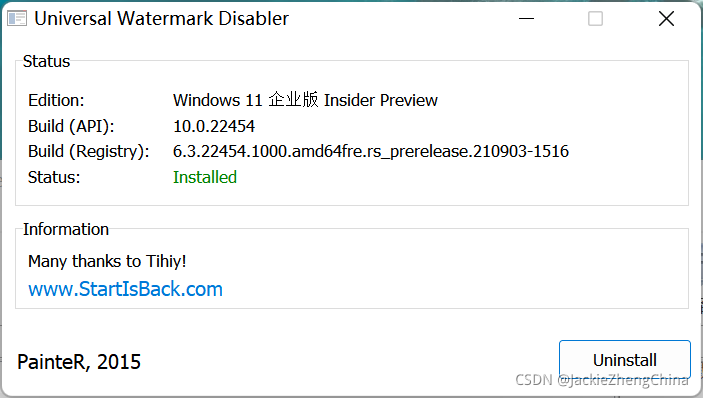 * 如果想要恢复水印的话重新执行程序,点击Uninstall按钮就OK了。