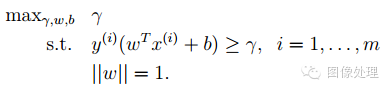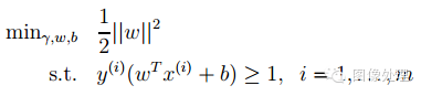 ,其中的分母就是样本到分类间隔距离,分子中的R是所有样本中的最长向量值),即: