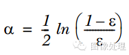 2. 通过ε来计算该弱分类器的权重α,公式如下: