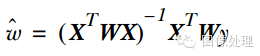而在LWLR(局部加权线性回归)中,参数的计算表达式为:
