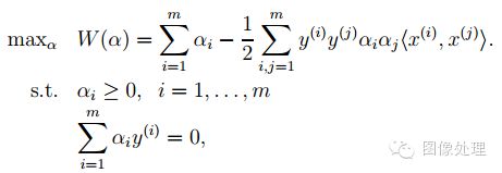 我们只需要最小化上述目标函数,其中的α为原始优化问题中的不等式约束拉格朗日系数。
