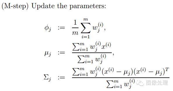 M步公式如下(计算每个高斯的比重,均值,方差这3个参数):