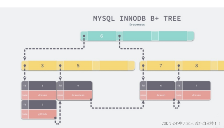 无论是表中的数据(主键索引)还是辅助索引最终都会使用 B+ 树来存储数据,其中前者在表中会以 <id, row> 的方式存储,而后者会以 <index, id> 的方式进行存储,这其实也比较好理解: