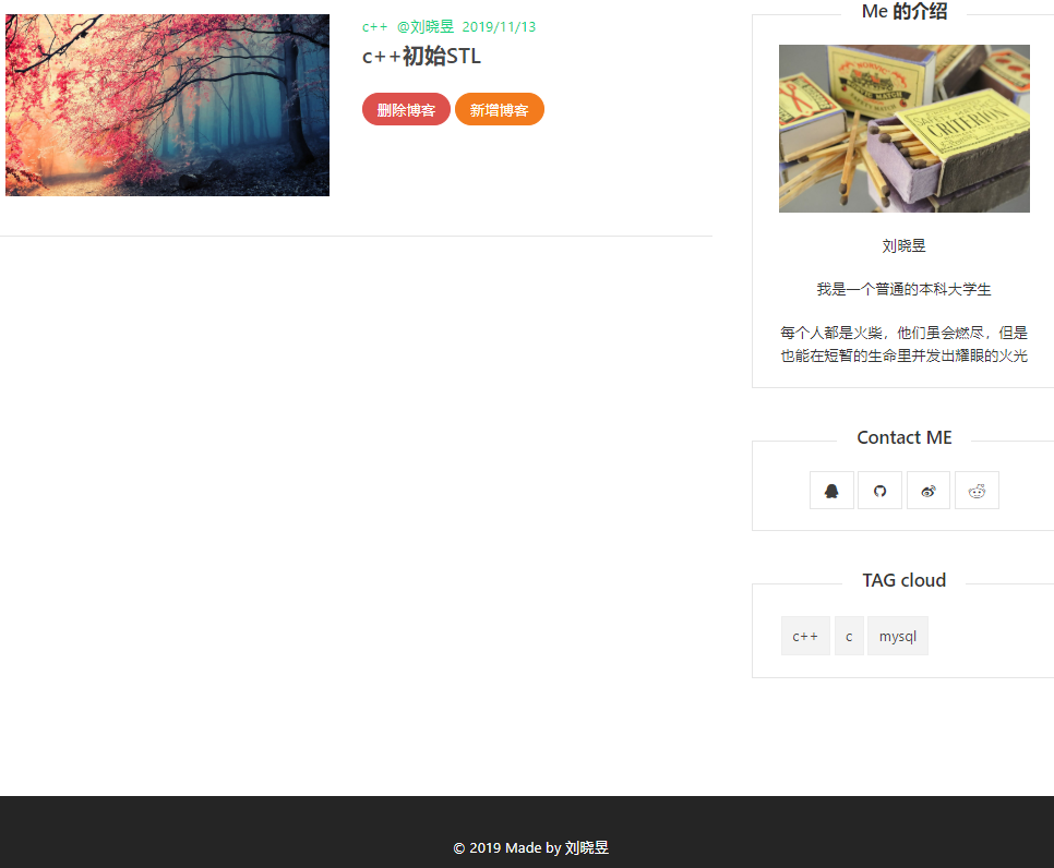 - 目前实现的功能,尚且只有博客的增删改查,虽然关于标签的增改,后台功能已实现,但由于本人前端编程语言并不是很熟所以还无法实现