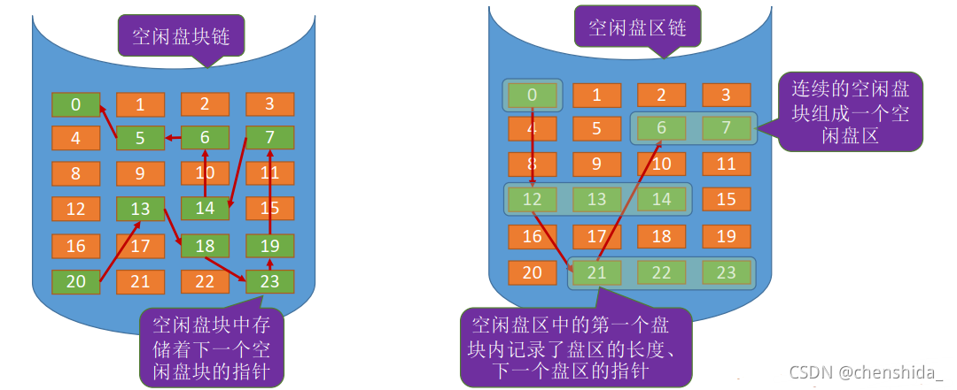 找效率低。另外,指向下一个盘块的指针也需要耗费少量的存储空间。