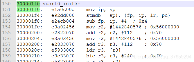 第一个程序中uart0_init所在地址为300001e4
