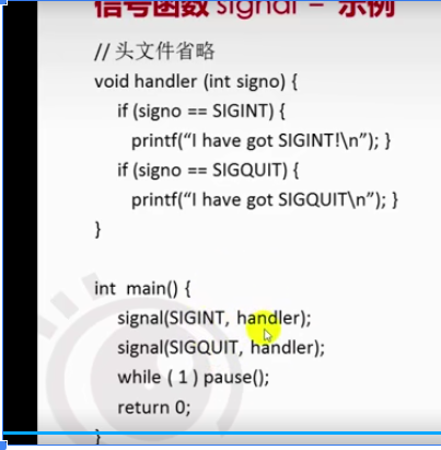 handler 指定的信号处理函数: SIG_DFL代表缺省方式
