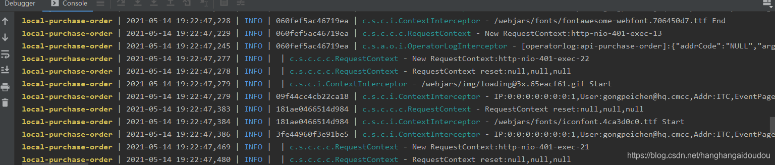 public class ContextInterceptor implements HandlerInterceptor {RequestContext context = RequestContext.getCurrentContext();context.reset();log.debug("traceId:" + MDC.get("traceId"));String requestId = MDC.get("traceId");requestId = StringUtils.isEmpty(requestId) ? request.getHeader(RequestContext.REQUEST_ID) : requestId;requestId = StringUtils.isEmpty(requestId) ? request.getParameter(RequestContext.REQUEST_ID) : requestId;requestId = StringUtils.isEmpty(requestId) ? UUIDUtil.uuid() : requestId;MDC.put("TID", requestId);}