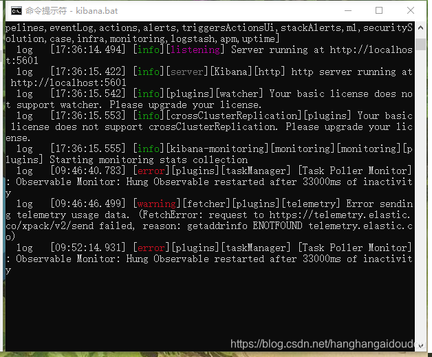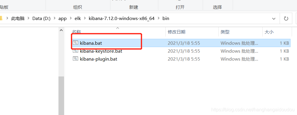 然后到对应bin目录下启动,直接点击 kibana.bat启动即可,或者在CMD命令启动