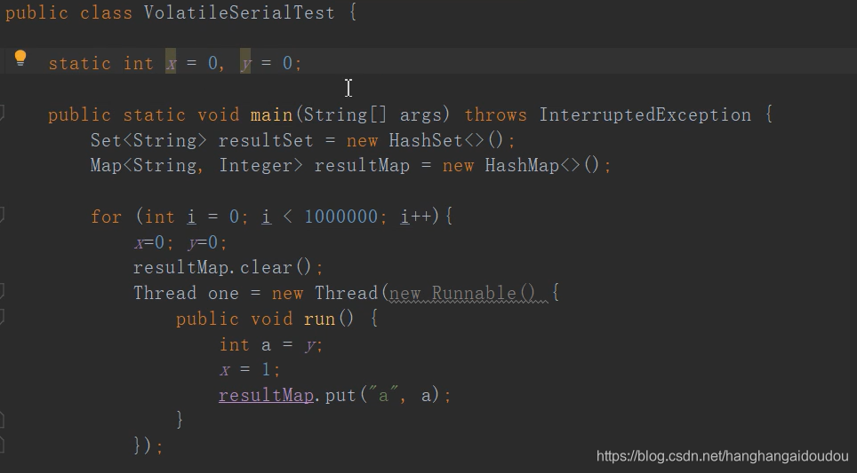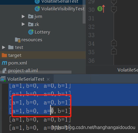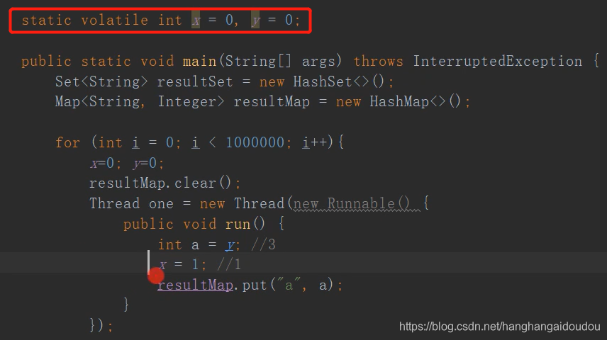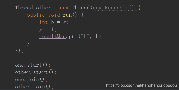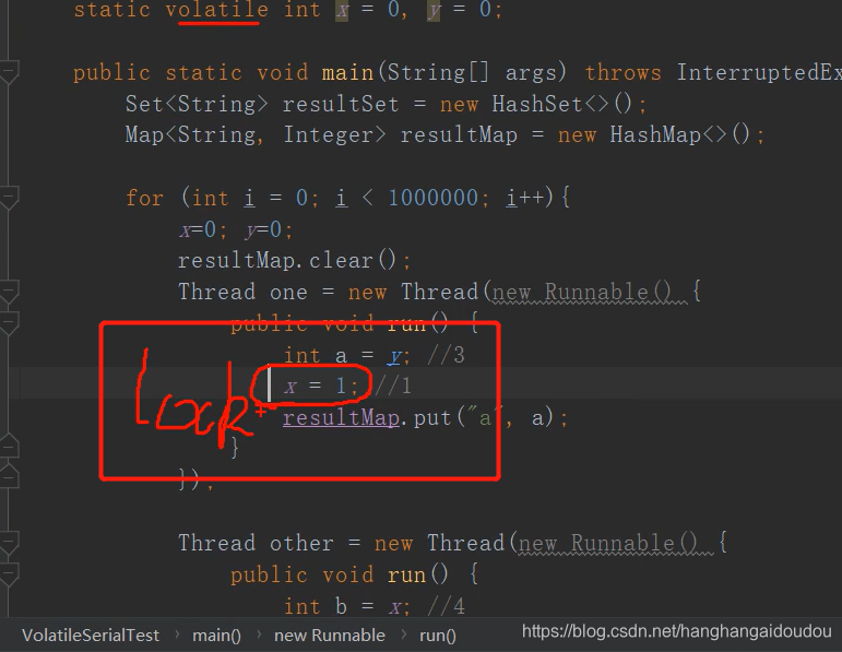 运行结果是:四种组合结果都有可能 因为CPU会将指令重排序