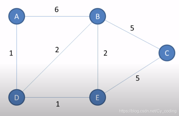 其中,ABCDE就是我们需要遍历的节点,连接节点的弦上的数字表示了两节点之间的"距离",或称之为权重,消耗。需要注意的几点是 :