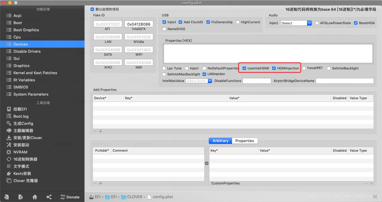 以上是clover configurator中的截图, 接下来放完整的config.plist: