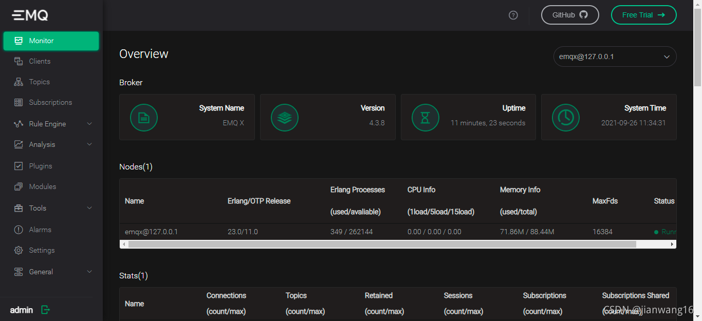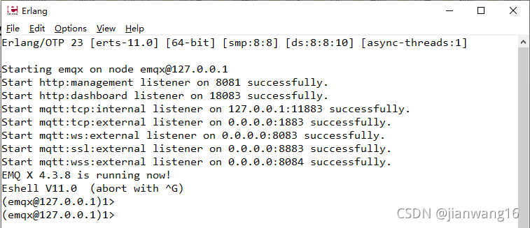 此时,emqx broker mqtt服务器已经启动。